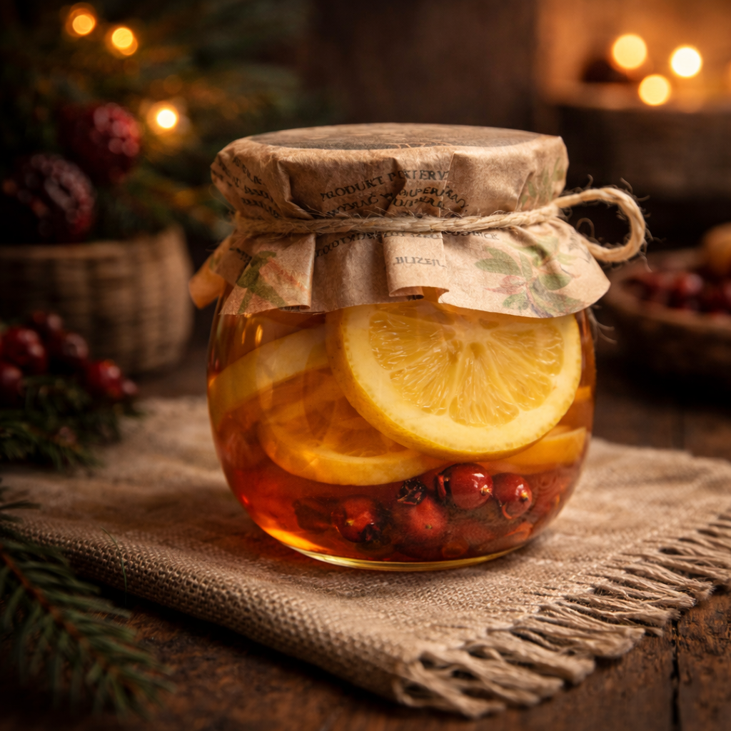 Różana Cytryna to połączenie soczystych plasterków cytryny z aromatycznym syropem z dzikiej róży. Naturalna cytrusowa świeżość harmonijnie łączy się tu z delikatną, kwiatową słodyczą róży, tworząc zbalansowaną i elegancką kompozycję.
