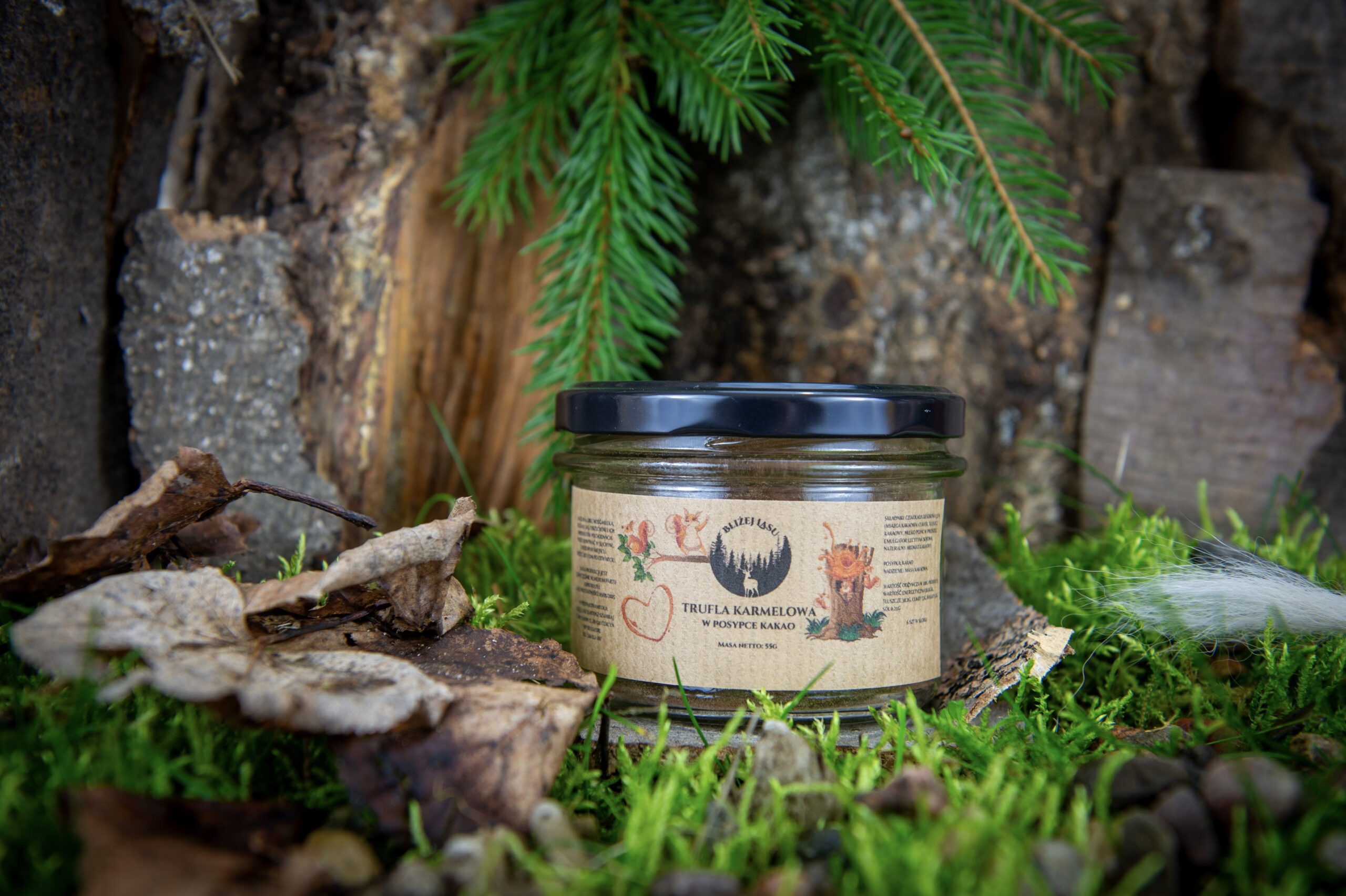 Dodatek do prezentu: Elegancki słoik z truflami karmelowymi to doskonały prezent na każdą okazję. Idealny dla miłośników słodkości.