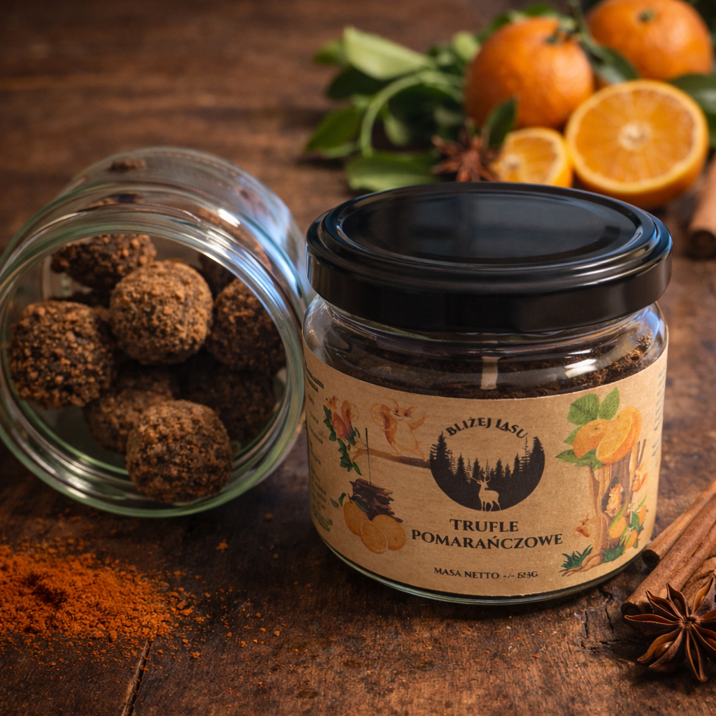 Nasze Trufle Pomarańczowe łączą głębię deserowej czekolady z lekką, cytrusową nutą. To połączenie jest wyważone i przyjemne. Nie przytłacza słodyczą.