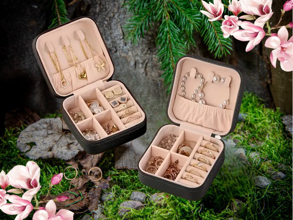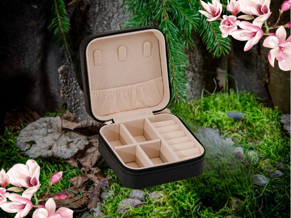 Eleganckie pudełko na biżuterię w głębokim, ciemnym kolorze. Dzięki miękkiej wkładce zabezpiecza delikatne dodatki, jednocześnie pięknie je eksponując. Idealne jako opakowanie na prezent świąteczny, komunijny, urodzinowy lub ślubny. Pasuje zarówno do biżuterii klasycznej, jak i nowoczesnej. Styl minimalistyczny sprawia, że to pudełko sprawdzi się zarówno dla kobiet, jak i mężczyzn – do przechowywania lub wręczania ulubionych drobiazgów.
